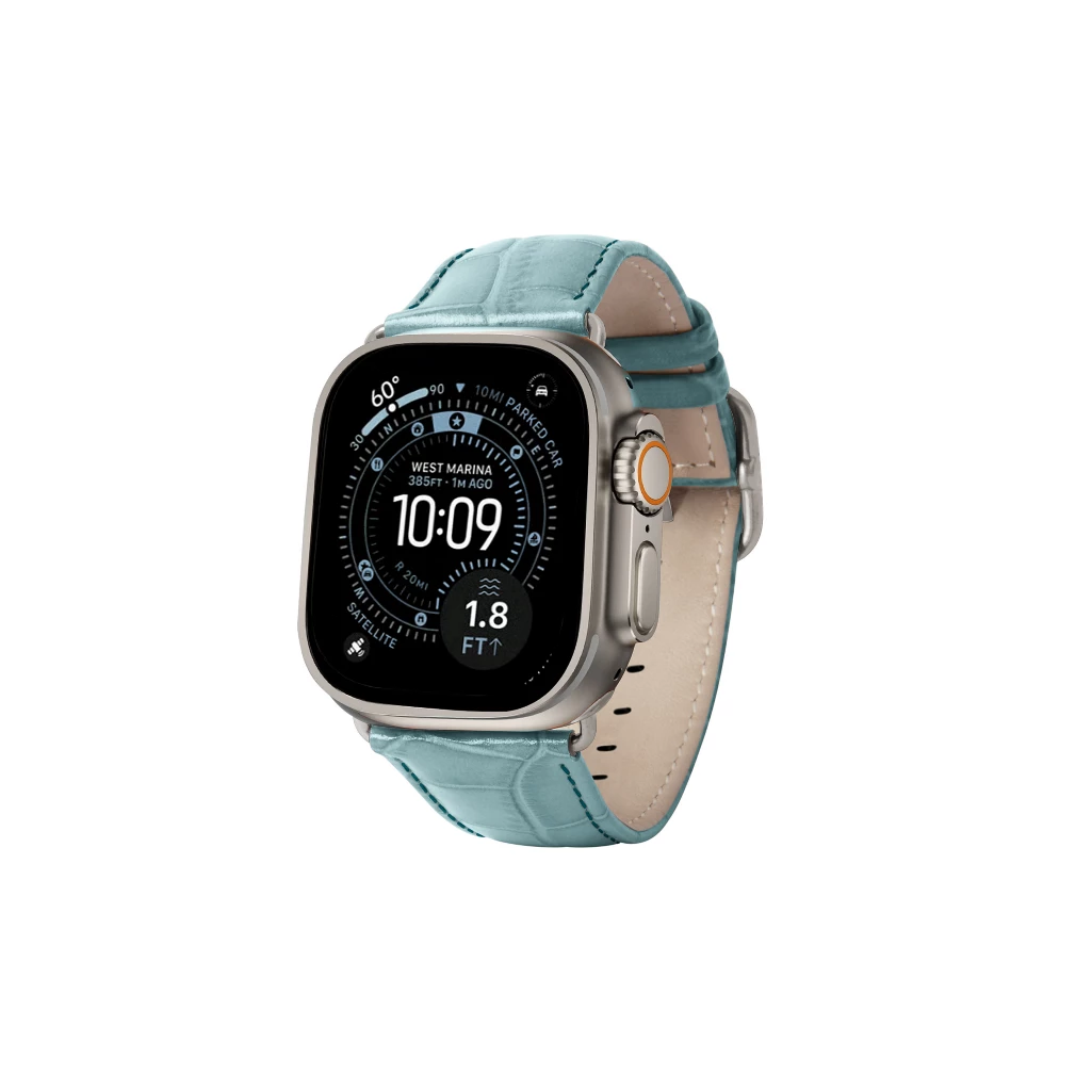 Apple Watch Ultra Leather Strap with Pin Buckle - Silver Adapter Turquoise  - Crocodile Style Calfskin