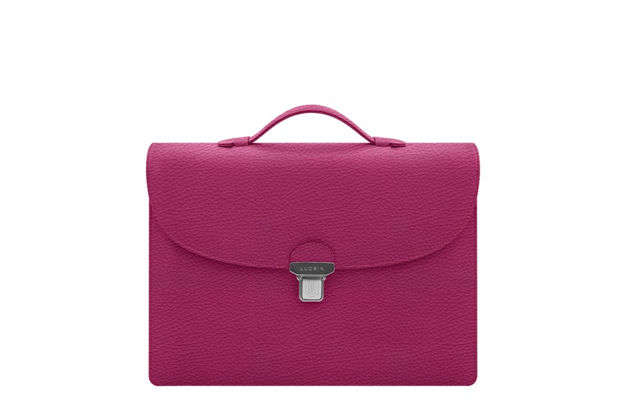 Briefcase 2 compartments - Fuchsia - Granulated Leather