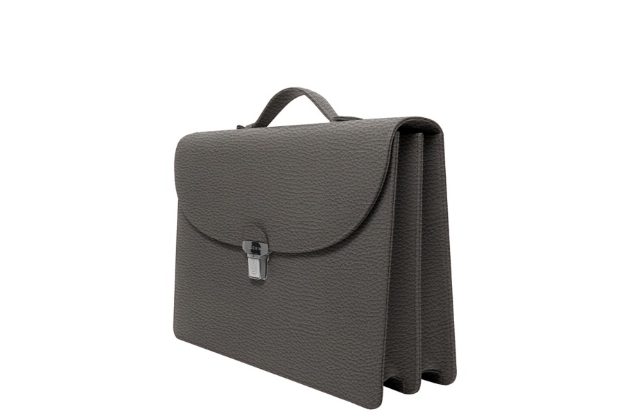Briefcase 2 compartments - Mouse-Grey - Granulated Leather