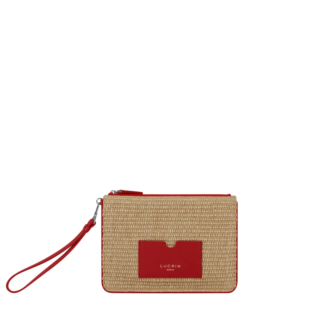 Generic name: Summer Raffia Pouch – Classic Size - Red - Smooth Leather
