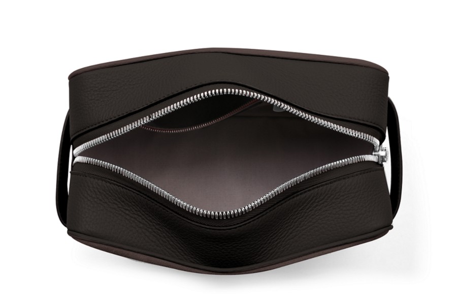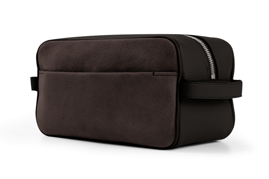 Designer Toiletry Bag (25 x 14.5 x 11.5 cm) - Dark Brown - Suede Calf