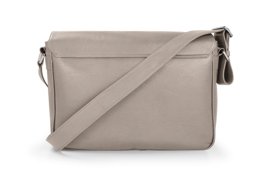 Great to carry everyday, this messenger bag comes with a large magnetised flap closure, rounded shape and soft conception. Two magnets help the flap of the mailbag snap shut and this is very practical when you are on the move. The cotton lining plus the zipped flat pocket inside the sling bag ensure that you can keep in your daily essentials, such as your phone, wallet and keys. The relatively large volume of this shoulder bag allows you to slip in your doc holder, notepad, copybook or a laptop of up to 17 inch. You can customise this leather crossbody bag with your initials for instance.