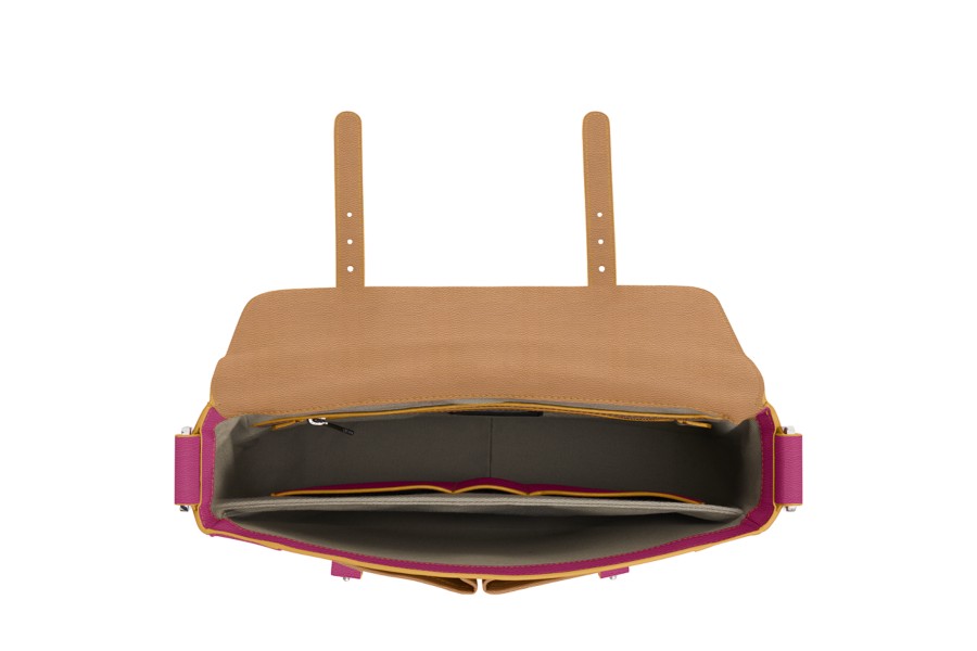 Courrier Bag - Natural-Fuchsia - Granulated Leather