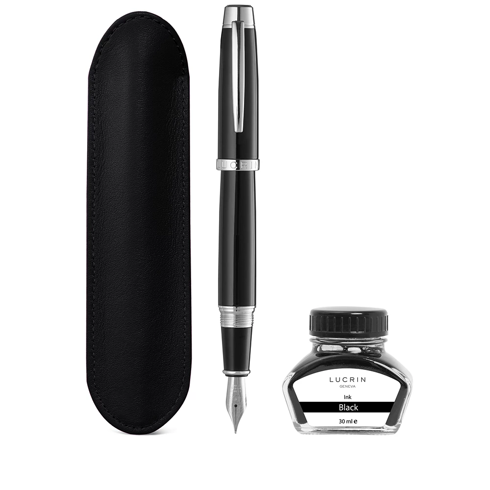 LUCRIN introduces the fountain pen in Maxi version for those who prefer an elegant writing instrument, with a large barrel and comfortable grip that provides the ultimate writing comfort. Delicate silver-coloured plating dazzles in the pen's magnificence. With a weighty feel and solid construction, you can feel the quality in your hand; styling exudes excellence. If you're looking for a functional and luxurious gift, this is the pen for you.
