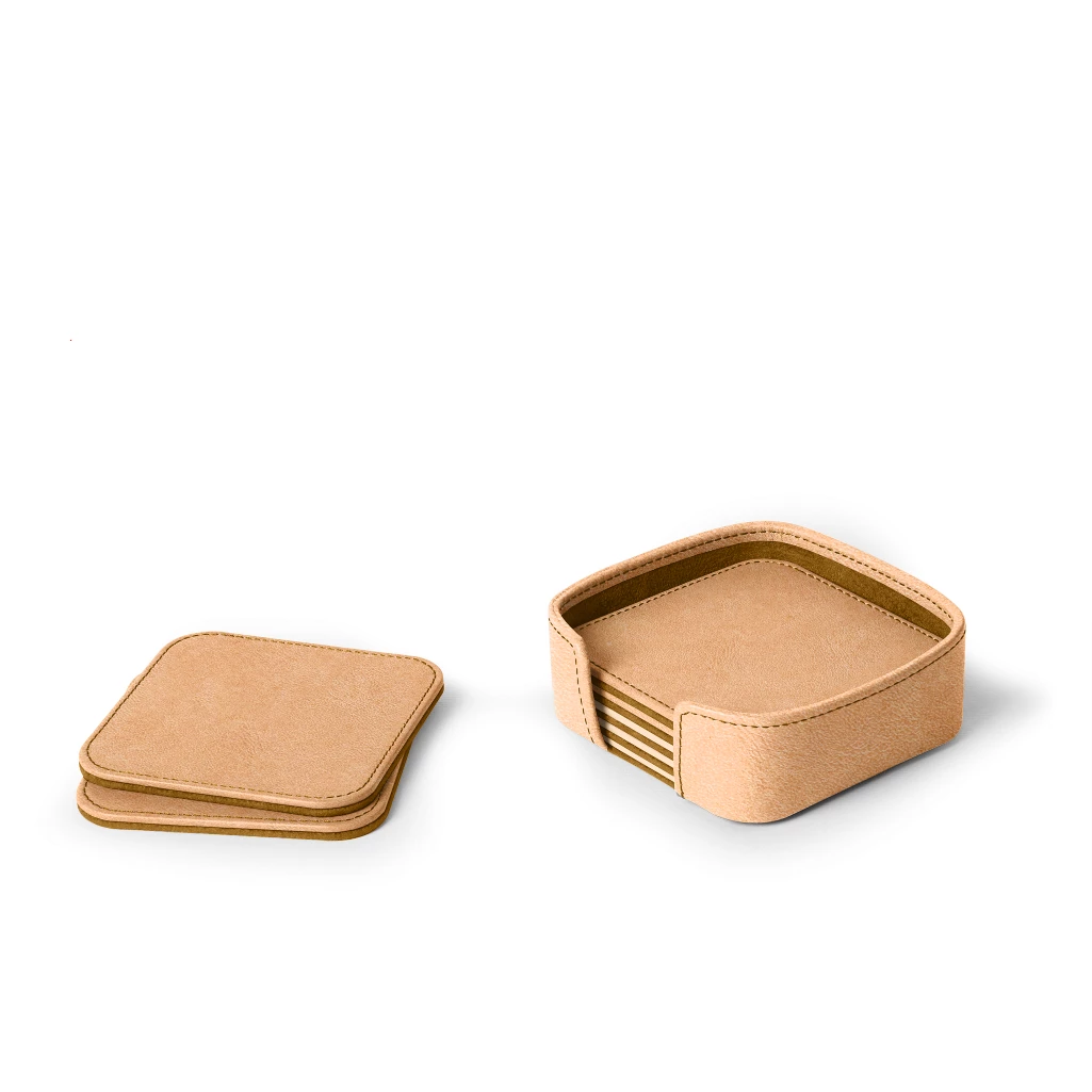 Generic name: Set of 6 Square Coasters - Natural - Vegetable Tanned Leather