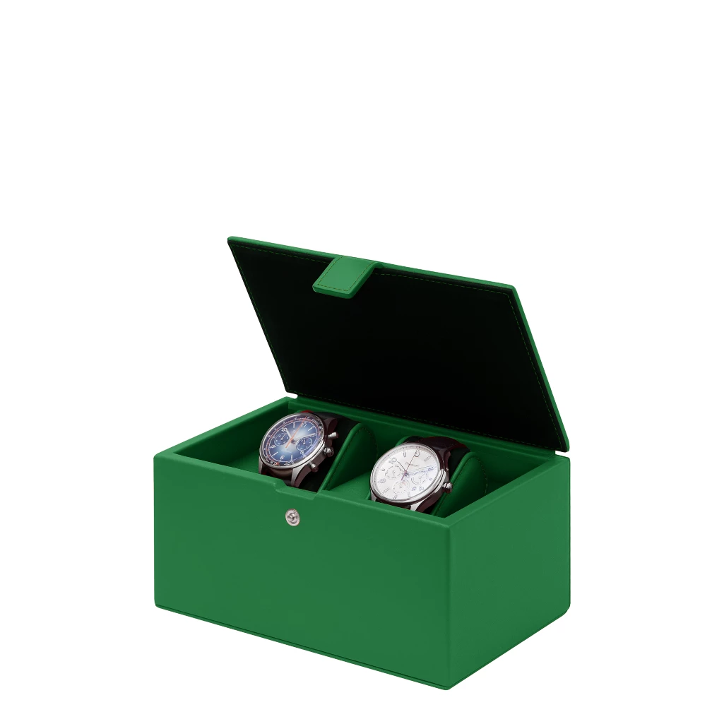 Generic name: Watch box for 2 watches - Light Green - Smooth Leather