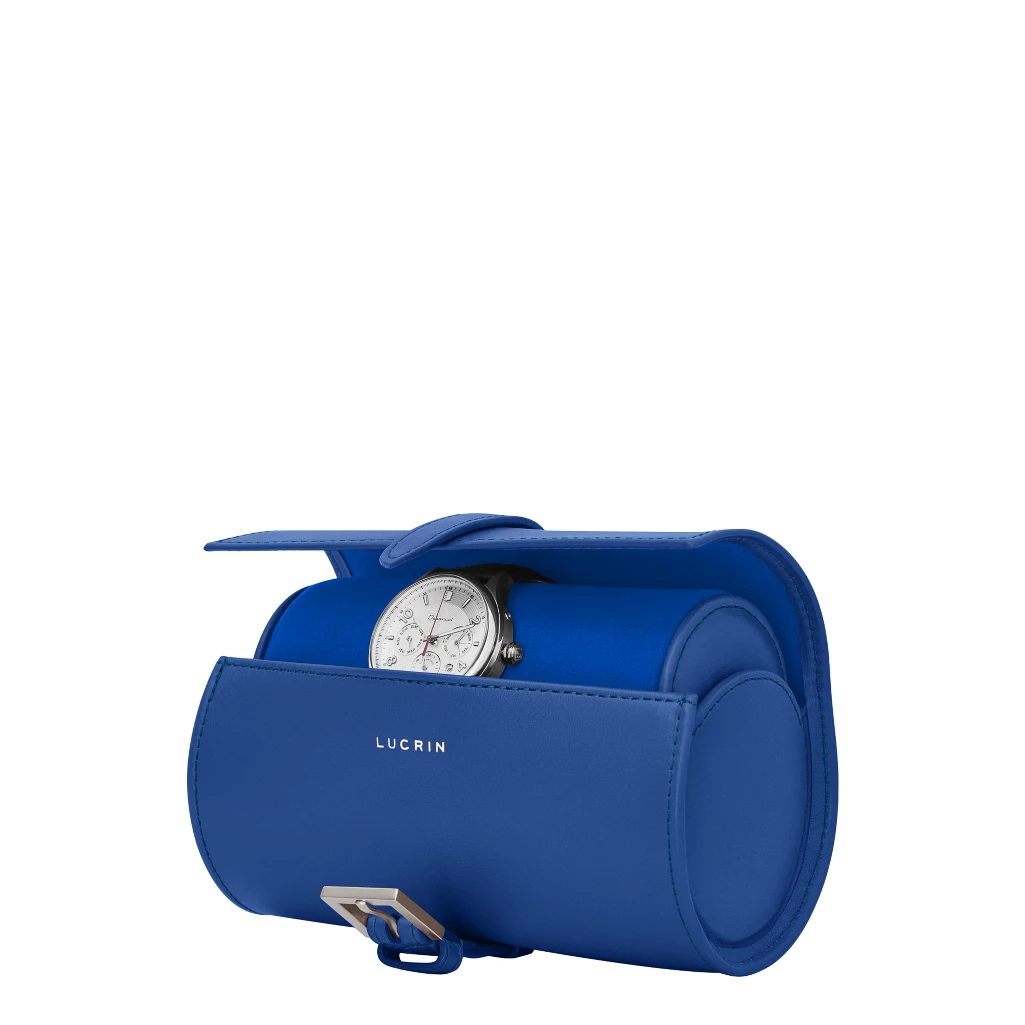 Generic name: Travel watch case - Royal Blue - Smooth Leather
