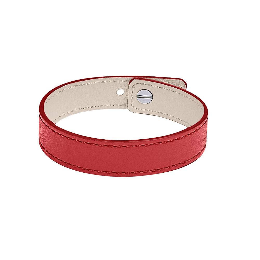 Leather Bracelet for Men & Women Red  - Smooth Leather