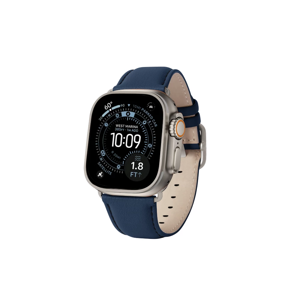 Apple Watch Ultra Leather Strap with Pin Buckle - Silver Adapter - Navy Blue - Calf Leather