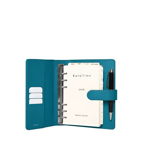 Medium 2026 agenda binder made of full grain leather with 6 nickeled rings. 3 interior pockets for credit cards. Delivered with 2026 calendar/agenda filler in 6 languages, 1 week on 2 pages / telephone index / memo.