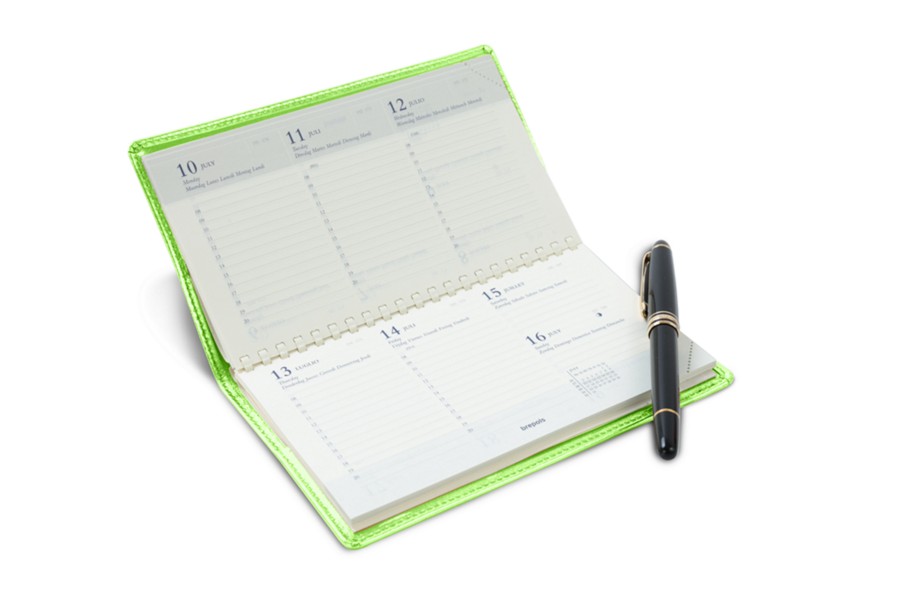 Week-To-Week pocket diary - Light Green - Metallic Leather