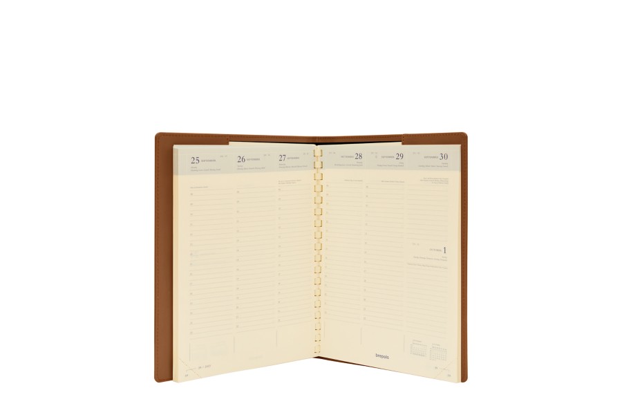 Leather simple refillable desk diary 2019. Supplied with a Brepols Timing spiral-bound, week-on-two pages weekly planner.