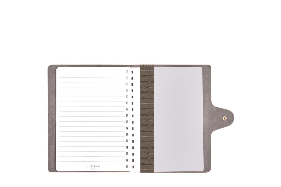 A5 Rechargeable Notebook Cover - Light Taupe - Crocodile style calfskin