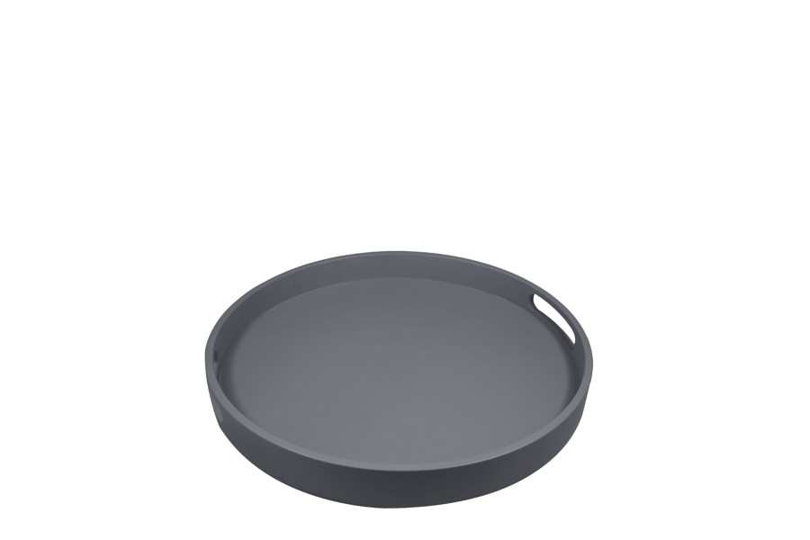 Round service tray - Mouse-Grey - Smooth Leather