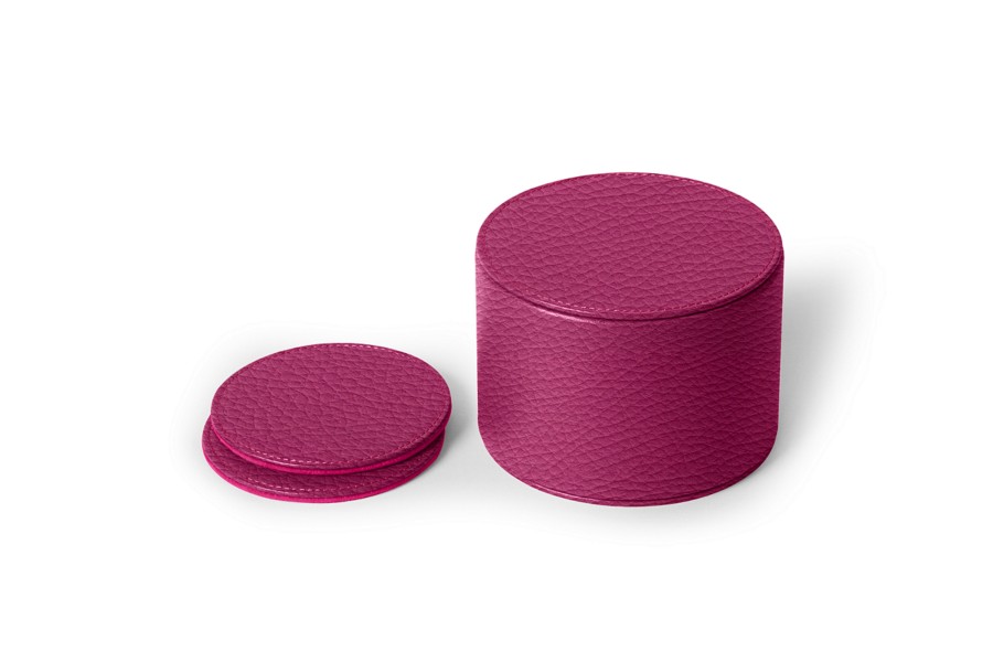 Set of 12 coasters - Fuchsia - Granulated Leather