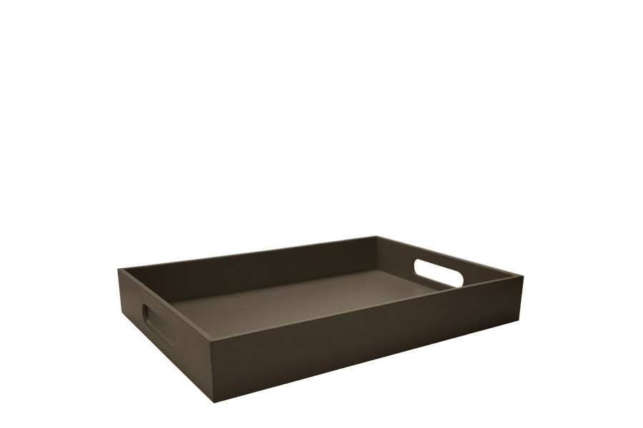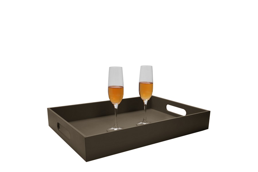 Tray with handle (50 x 35 cm) - Dark Taupe - Smooth Leather