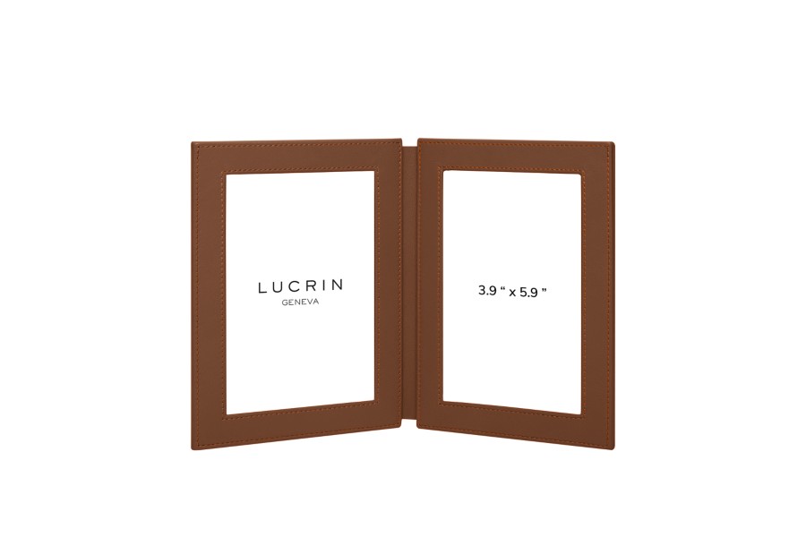 Double picture frame (14.5 x 19 cm) - Tan - Granulated Leather