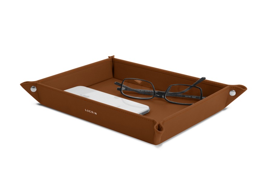 Large rectangular tidy tray (21.5 x 15.5 x 2.5 cm) - Tan - Smooth Leather