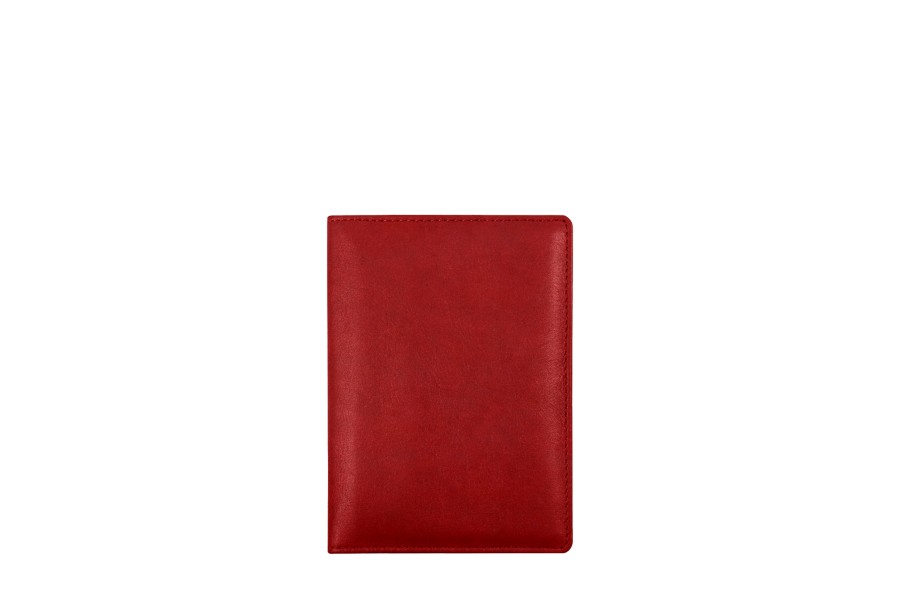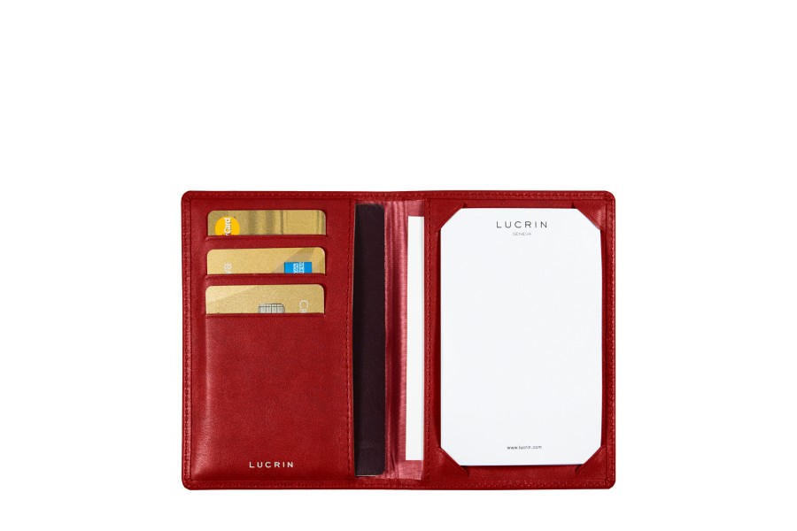 Pocket-sized note pad in full grain leather. Inside 2 pockets on the left, one for business cards and one large vertical passport format. On the right side, note pad and one large vertical pocket. Delivered with 10 white pages. Size open: 19,5 x 14 cm. Size closed: 9,5 x 14 cm